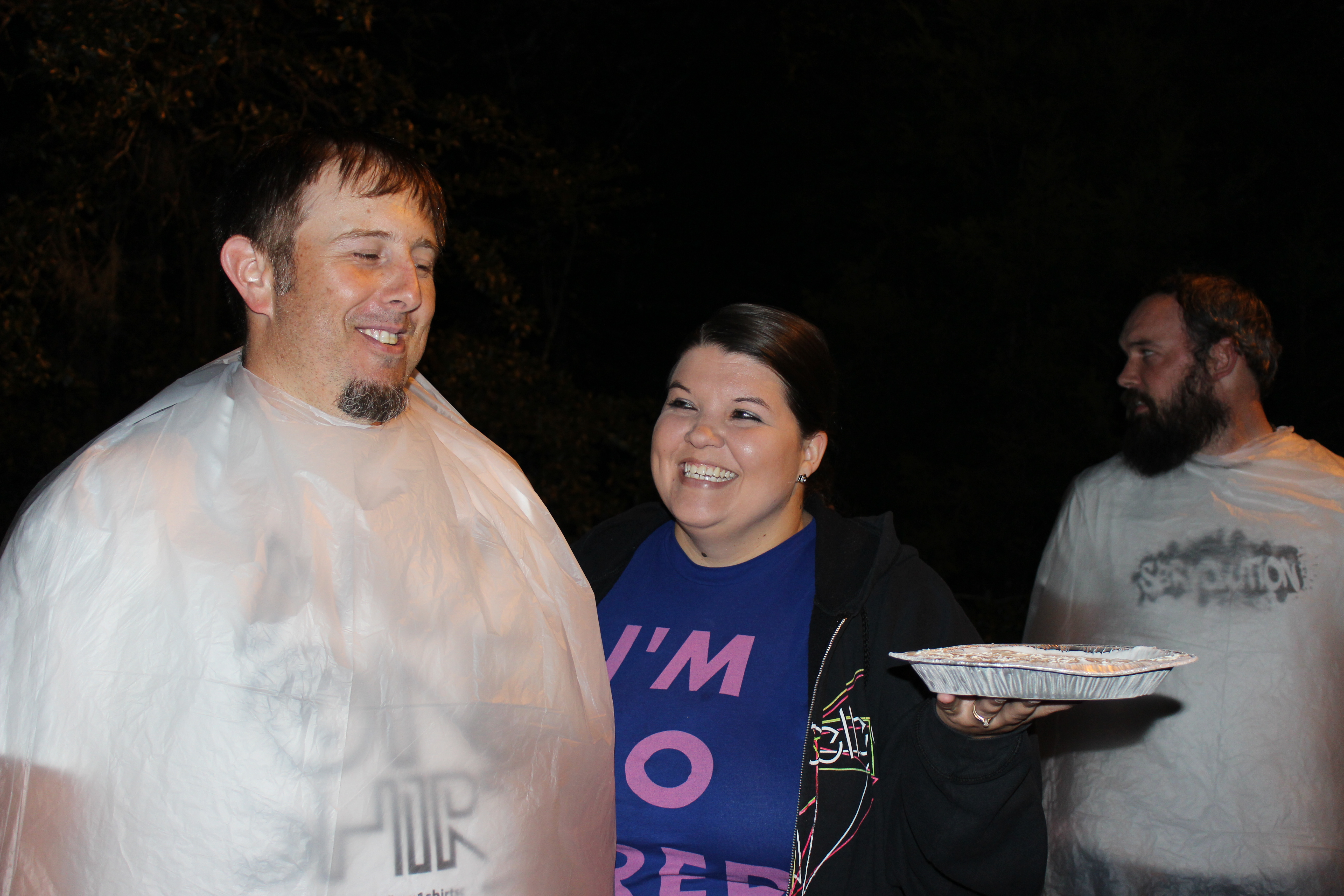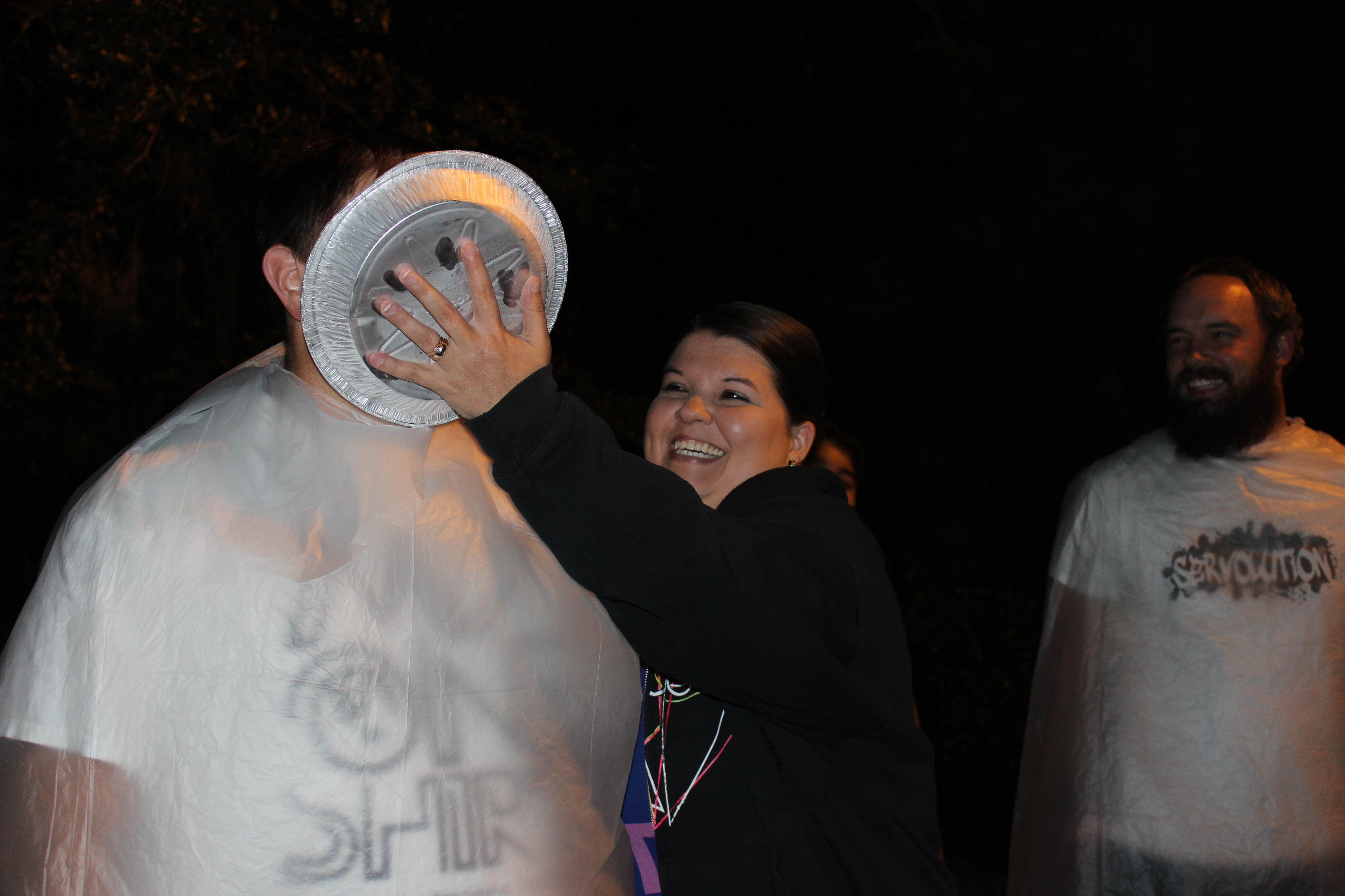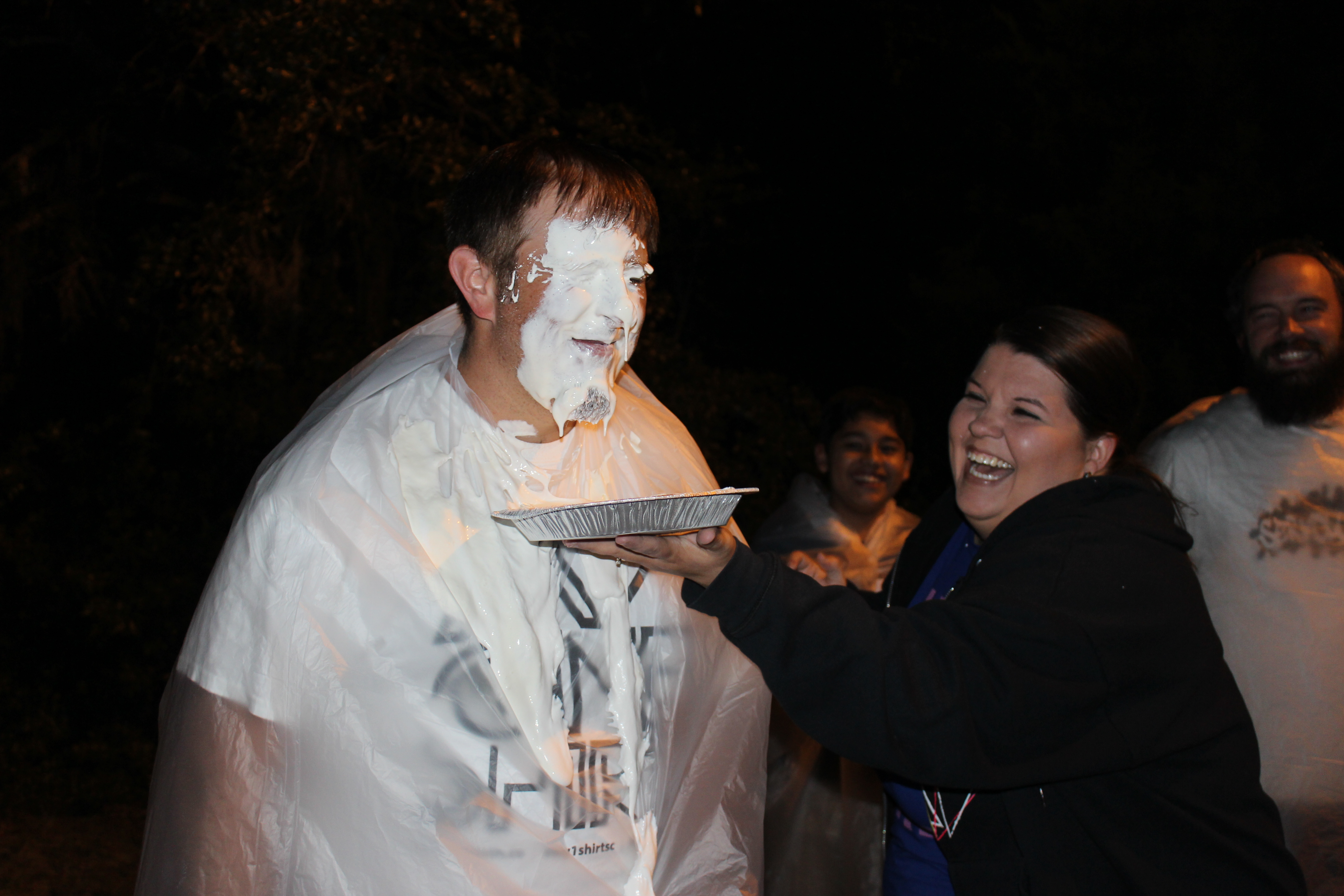 We had one of those fun-goofy-crazy-memories-were-made nights last night. See, we challenged our youth to raise money for missions. If the guys won, they would have had the privilege of pouring slime on the girls. However, the girls won…which means that we got to throws pies in their faces. It was AMAZING. I claimed the first pie for my dear husband and then told the girls that they could go for it.