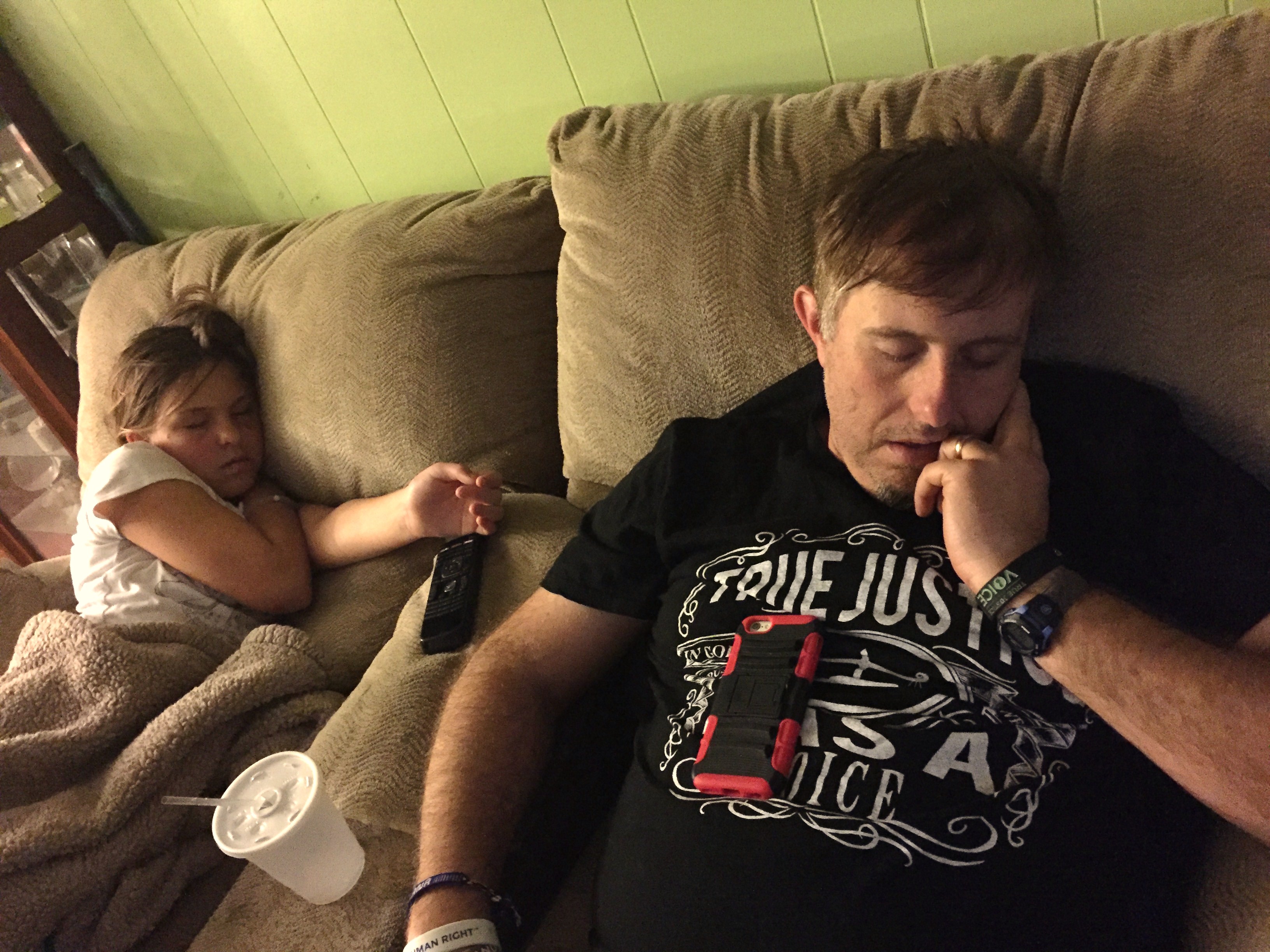 We made it back home after dark and I spent a few more hours getting these organized for Thanksgiving. Allie started out helping me and then she faded into the living room and ended up beside her daddy like this….