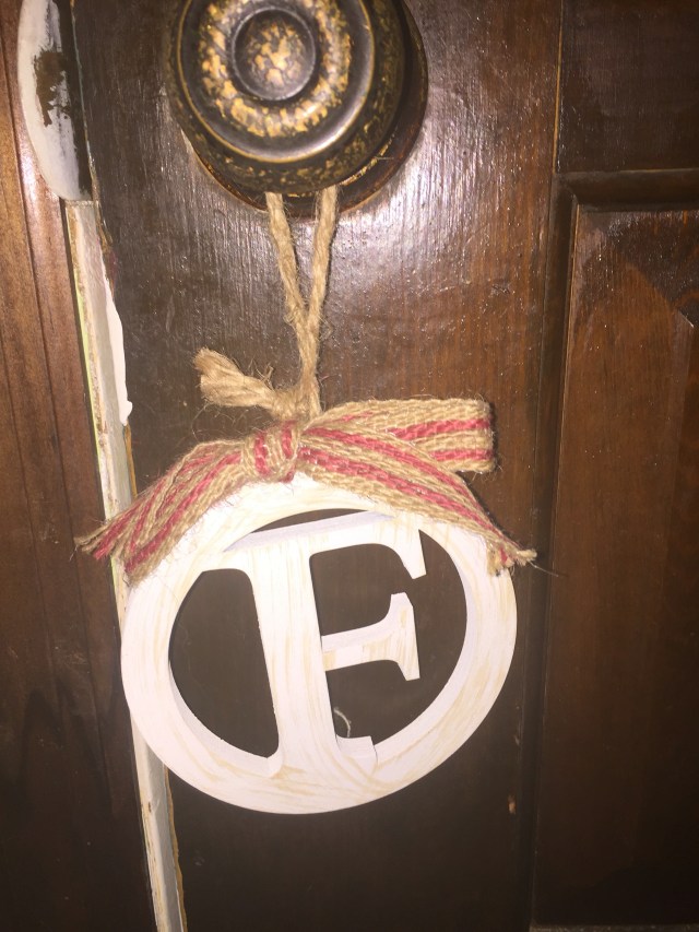 Another cute little touch of character was this ornament. This is actually a Christmas ornament and I snagged it on 75% clearance. I think that I paid like two dollars for it. I thought that it was adorable and that it did not even really look Christmas-y, so it is hanging on our front door.