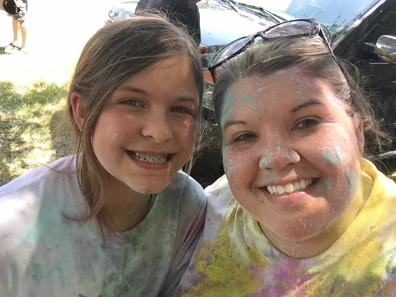 We attempted to play dodgeball, but honestly the majority of students did not want to play since it was so hot! They stood around and tried to get in some shade while waiting for the main event. That’s right, everyone was waiting for the color war to begin. This was our second year including a color war in our weekend. If you read my post from last year, you remember that we worked every single night the week before the event to get all of the color finished. Yes, we make it ourselves! This year since we knew exactly what the process entailed, we started months before. We worked one or two times a week for a couple of months to get all of the color made. It was great!