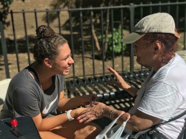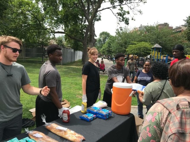 We participated in numerous adopt a blocks while we were there. The NYCDC has been so faithful with these events- the people in the community know when they are coming and they are lined up waiting. We were able to minister in the Chelsea and Harlem areas. At an adopt a block, once the initial set up is complete, there are several ways to minister. Some of us helped with the passing out of groceries and hygiene items, some of us passed out hotdogs/cookies/water/lemonade, some of us engaged the waiting adults in conversation, some of us played with the children and some of us prayed with people once they had come through the line. The experience overall differed so much depending on where we were that day. At one spot, people just wanted the free food and then to be left alone. Another day, our students were able to pray with almost everyone that came through the line. Not much could make me more proud then when I looked over from my station and saw my kids praying over strangers in the streets of NY!